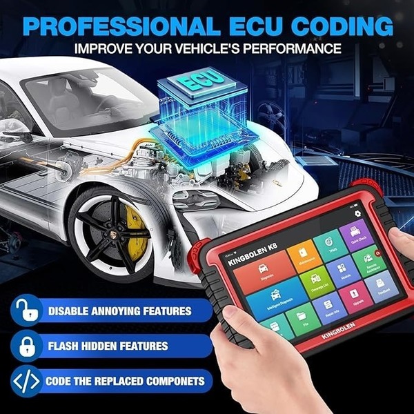- Advanced ECU Coding + Active Test: The Kingbolen K8 has ECU coding capability to perform ECU coding which can perform Online Coding/Offline Coding to match/Initialize components' adaptive data after replacing some components, and Flash Hidden Functions to optimize vehicle performance and activate high-end functions, like rear-view mirror folding, and maximum speed limiter, etc.